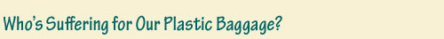 WHALES: Of all the marine debris washed, dumped or blown into the ocean, more than 70 per cent is plastic. In August 2000, a whale was stranded in north Queensland. It died soon after. An autopsy found that the whale’s stomach was tightly packed with plastic – almost 6 square meters of it! The whale had swallowed supermarket bags, food packaging and other large plastic objects.